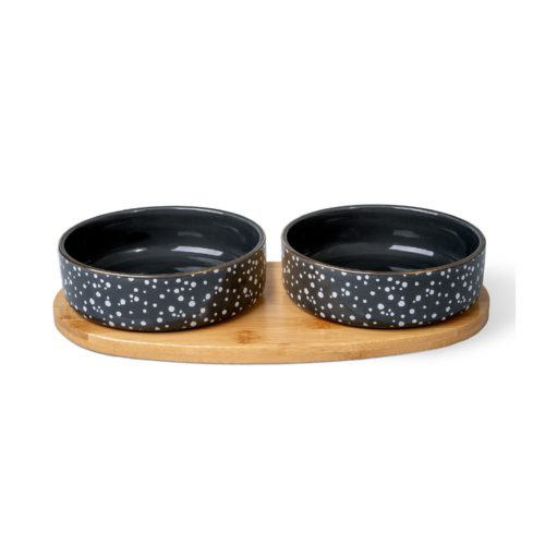 Κεραμικό μπολ φαγητού και νερού με βάση bamboo. Πλένεται στο πλυντήριο πιάτων ενώ η βάση μπορεί να καθαριστεί με πανί.